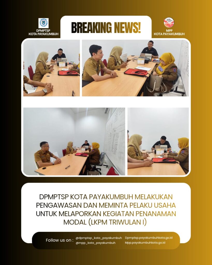 Dinas Penanaman Modal dan Pelayanan Terpadu Satu Pintu (DPMPTSP) Kota Payakumbuh melaksanakan kegiatan pengawasan terhadap pelaku usaha sebagai bagian dari upaya pembinaan dan penjaminan kepatuhan terhadap ketentuan perizinan berusaha. Salah satu kegiatan pengawasan tersebut dilakukan pada pelaku usaha Gajah Motor yang berlokasi di Kota Payakumbuh.