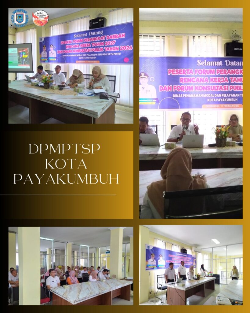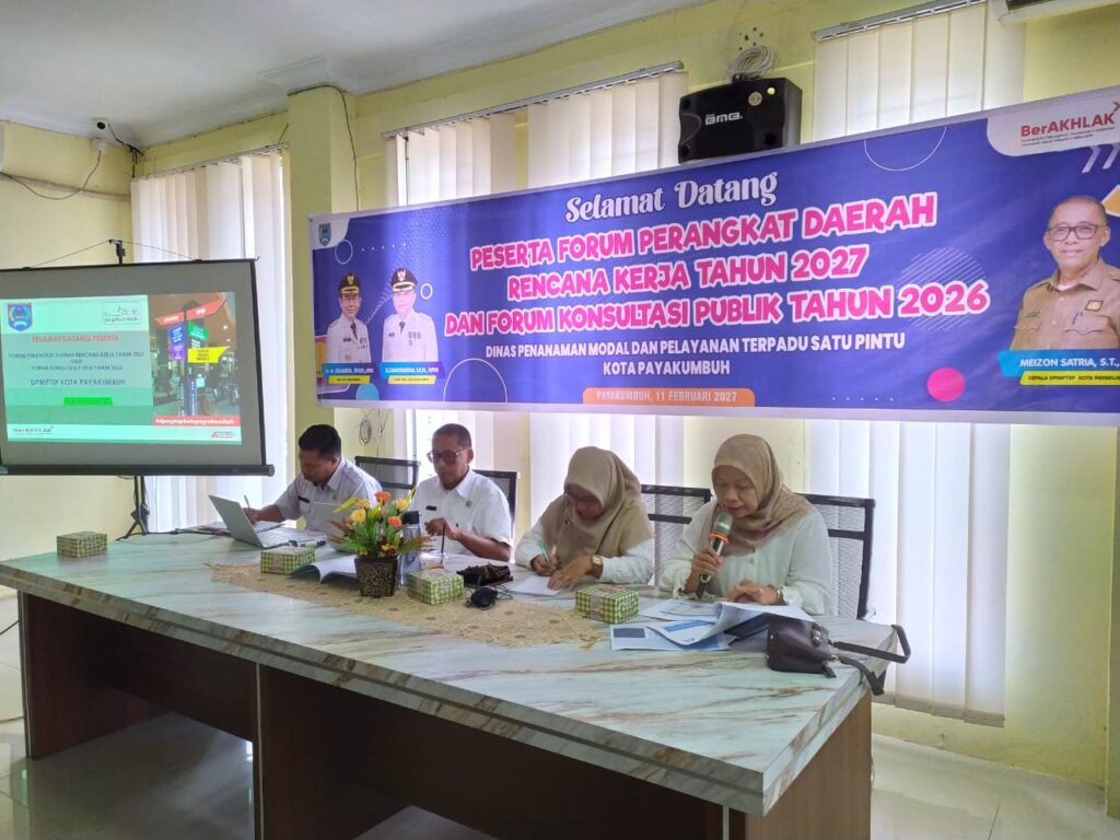 Dinas Penanaman Modal dan Pelayanan Terpadu Satu Pintu (DPMPTSP) Kota Payakumbuh menggelar Forum Perangkat Daerah Tahun 2026 dan Forum Rencana Kerja (Renja) Tahun 2027 sebagai bagian dari tahapan perencanaan pembangunan daerah yang partisipatif, transparan, dan terintegrasi.